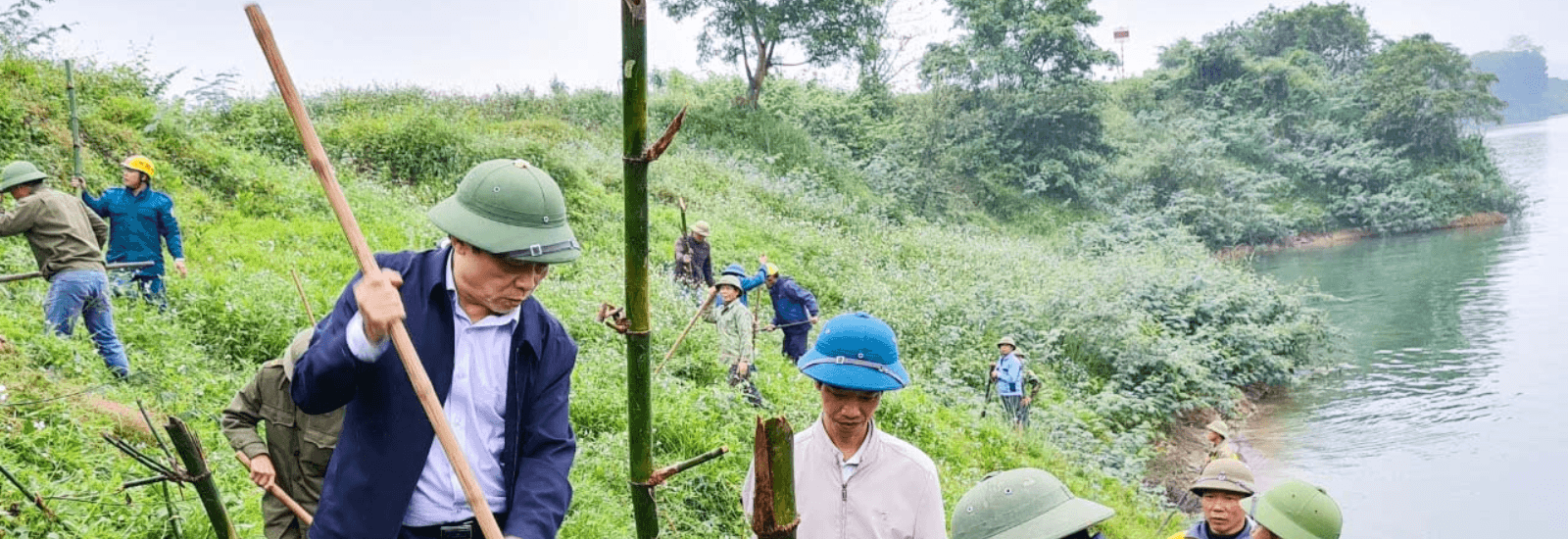 Trồng tre tạo bờ kè sinh thái dọc sông Lam